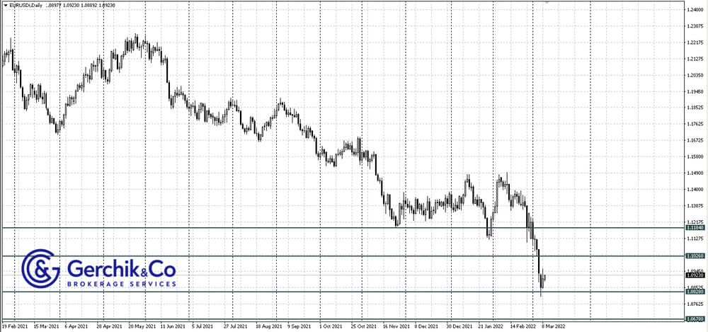 На этой неделе в четверг состоится заседание ЕЦБ. Из-за войны в Украине и ее влияния на экономику еврозоны Центробанк может пересмотреть свои планы по ужесточению монетарной политики и еще дальше отложить повышение процентных ставок, что лишит евро драйверов для восстановления.