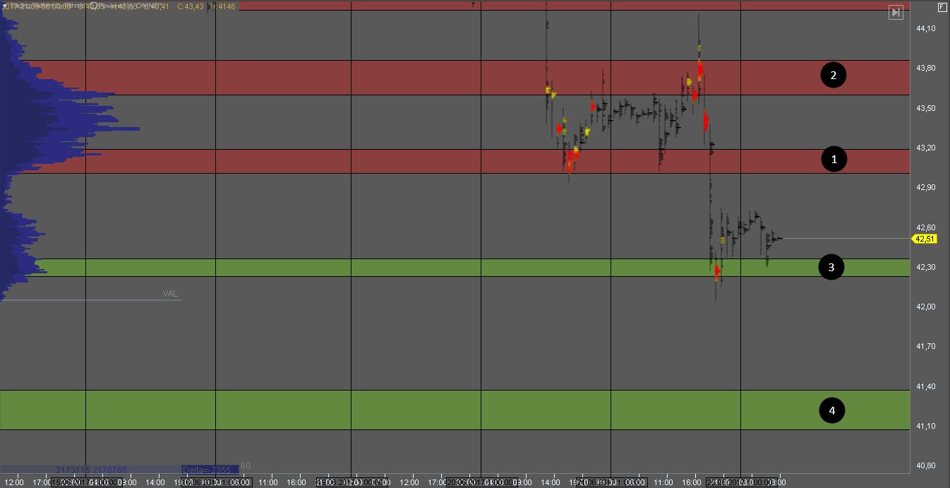 На тесте сопротивления 3 в рынке снова могут появиться продавцы. В случае, если зона 1 будет пробита, мы получим признаки слабости покупателя и продажи должны будут продолжиться к зоне 2.