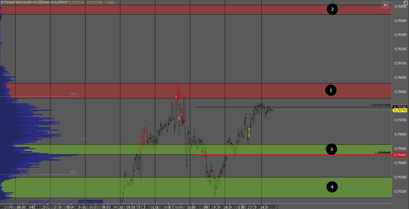 Канадец торгуется под давлением покупателя и тестирует сопротивление 1. На тесте можно поискать возможности для продажи при наличии паттерна.