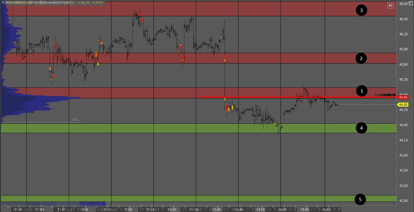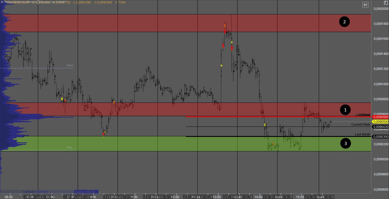 Если покупатель продавит сопротивление 1, можно ожидать продолжение покупок с целью в зонах 2 и 3.