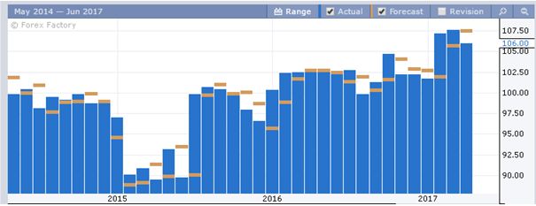 Из графика тенденции видно некоторое замедление в 2015 году, но мягкая монетарная политика дала все-таки стимулы для экономики, и индикатор стремится к новым максимумам.