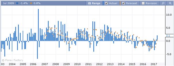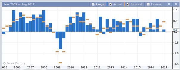 Однако, с 2012 г. индикатор показывает ухудшение до 0.5 % ежеквартального прироста, а в 2015 года и вовсе начал с отрицательной территории. Это стало еще одним из факторов для дополнительного стимулирования экономики, когда процентная ставка была доведена до -0.75 %.