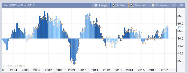 Говоря о показателе промышленного производства, как правило, цифры выше 50 указывают на расширение, ниже 50 наоборот - о сокращении. Соответственно, в дальнейшем индикатор влияет на конечные цифры по ВВП.
