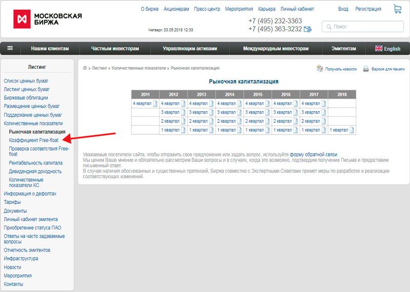 Данные публикуются на многих площадках – на сайте Московской биржи, например. Нужно зайти на сайт биржи, нажать на значок меню в верхнем углу страницы и в выпадающем списке выбрать колонку «Листинг», а в ней – пункт «Количественные показатели».