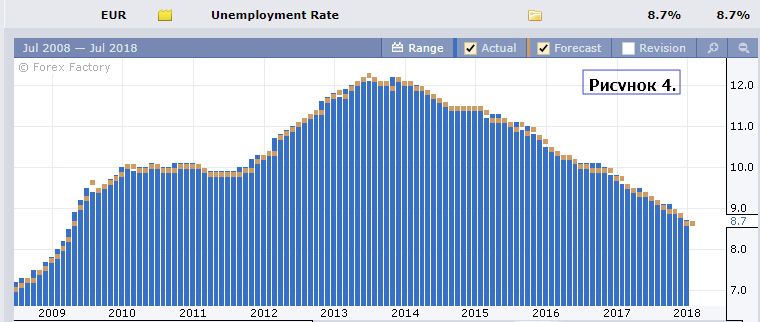 Уровень безработицы 8.7% - отличная динамика с 2014 года, свидетельствующая об укреплении Еврозоны.