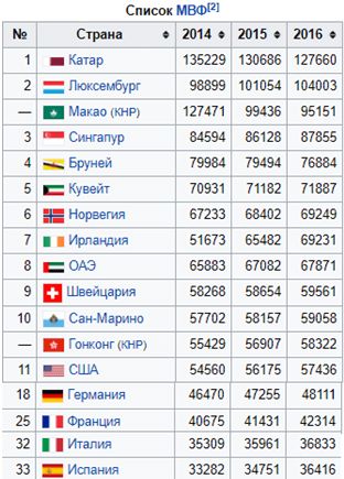 Для примера, ВВП на душу населения России, при всех природных богатствах, на 48 месте, со значением 26 490 долларов США. Это даже хуже, чем показатели Литвы (40 место) или Эстонии (41), когда-то входящие в состав СССР или Польши, которую зачастую берут для сравнения посткоммунистического развития (43).