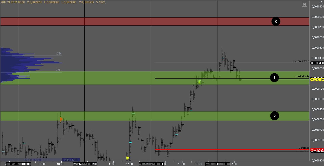 Покупатель контролирует котировку, и зона 1 выступает поддержкой, на которой можно искать возможности для покупок внутри дня.