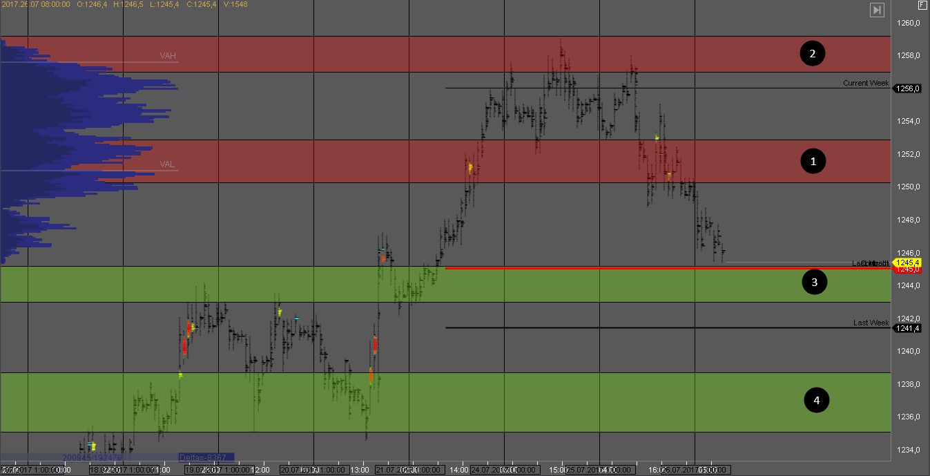 В случае пробоя зоны 2 мы получим признаки слабости покупателя, и стоит посмотреть на реакцию рынка.