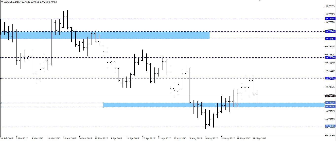 | Возможное обоснование входа | Если пара возвращается под уровень 0,7407 и удерживается в течение дня - рассмотрю в шорт | Возможное обоснование входа | Если пара торгуется над уровнем, пробивая его ложно баром с длинным хвостом - рассмотрю удержание для продолжения тенденции. Трактую как набор позиции покупателем и защита объема | ||