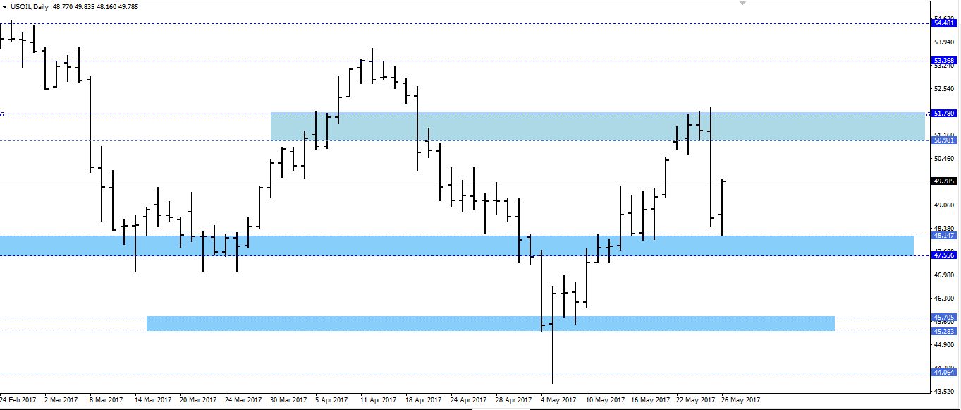 Инструмент откатывается после импульсного движения. Вижу два варианта развития событий: создается сопротивление в моменте, или нефть тестирует область сопротивления.