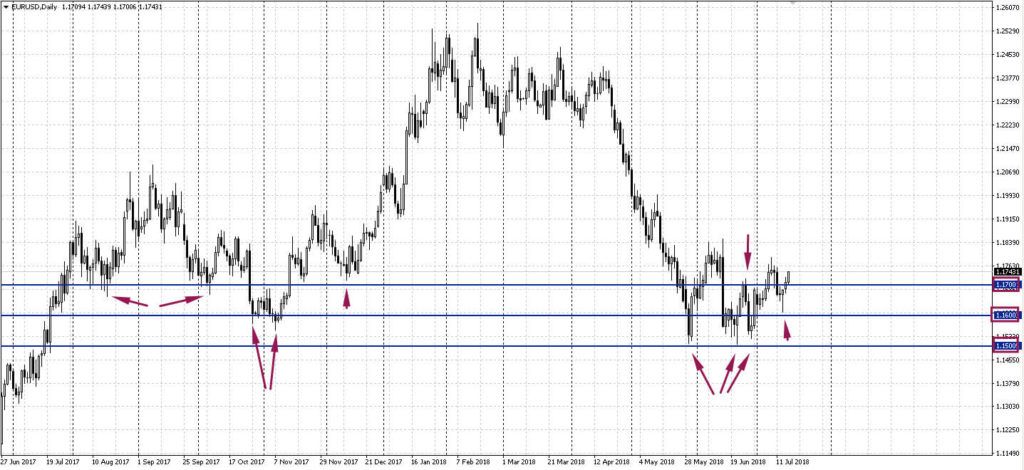 Формируются они, как правило, маркетмейкерами, так как банки, покупающие валюту, выставляют отложенные ордера на отскок по круглым ценам.