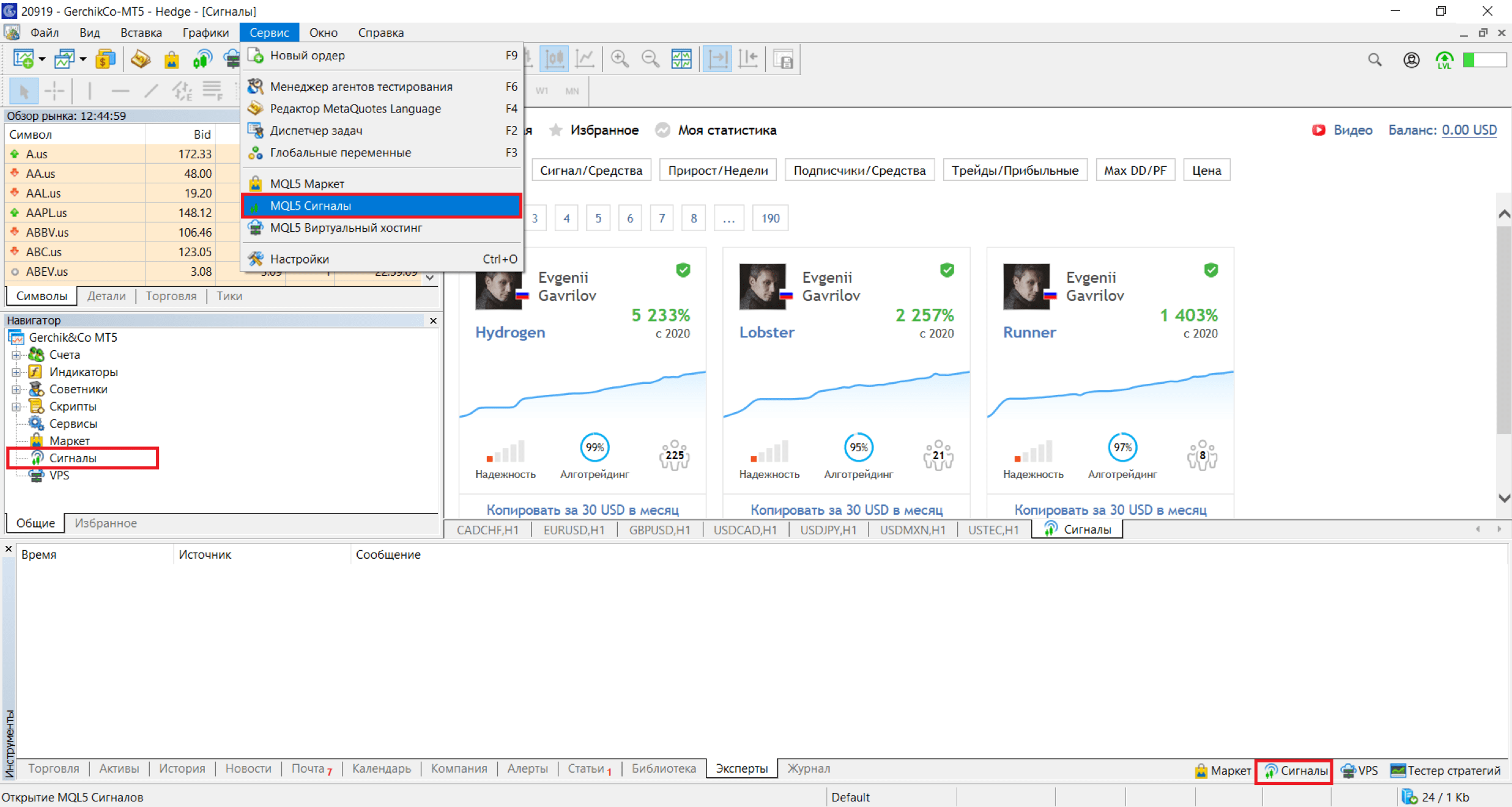 Как подключиться к сервису «Сигналы от Metaquotes»?